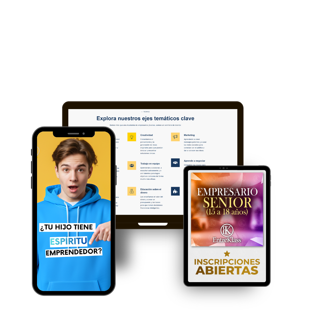 EntreKlass es una academia online de formación empresarial para niños y jóvenes de 7 a 18 años. Su enfoque educativo impulsa habilidades como liderazgo, creatividad, pensamiento crítico y resiliencia, combinando teoría con actividades prácticas y familiares. Está dirigida a padres conscientes y escuelas que buscan preparar a las nuevas generaciones con visión emprendedora. Su propósito es formar líderes con propósito capaces de transformar su entorno desde pequeños.